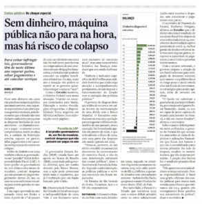 Na reportagem, publicada nesta sexta, 20, pelo Jornal o Estado de São Paulo, chama-se atenção para as exigências da Lei de Responsabilidade Fiscal, pela qual os estados não podem começar o ano sem a garantir de dinheiro para arcar com as despesas feitas no ano anterior.